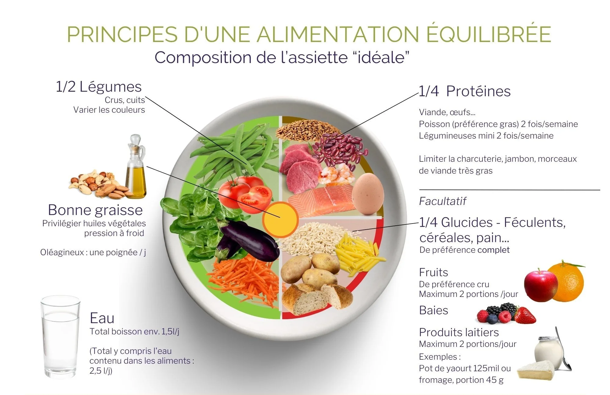 On l’appelle parfois “l’assiette idéale”. Comme son nom l’indique, c’est un repère, une intention… pas un objectif de perfection. Il y aura des exceptions, et ce n’est pas grave !